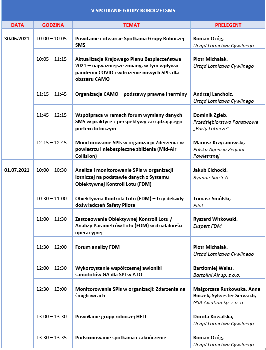 jest nam niezmiernie miło przedstawić szczegółową Agendę V spotkania grupy roboczej SMS, które odbędzie się w dniach 30 czerwca – 1 lipca 2021 r.