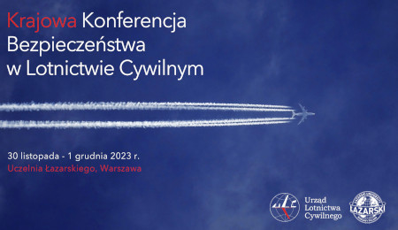 Zapraszamy na Krajową Konferencję Bezpieczeństwa w Lotnictwie Cywilnym, która odbędzie się w dniach 30 listopada – 1 grudnia 2023 roku na Uczelni Łazarskiego w Warszawie (ul. Świeradowskiej 43). Wydarzenie będzie miało charakter otwarty.