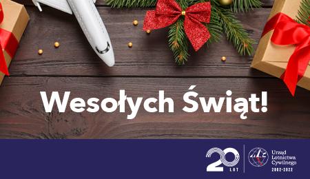 W imieniu własnym oraz pracowników Urzędu Lotnictwa Cywilnego życzę Państwu, aby magiczna moc Wigilijnego Wieczoru przyniosła pokój i radość, a Nowy Rok obdarował pomyślnością i szczęściem.