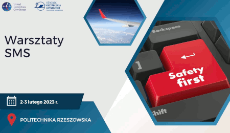 Szanowani Państwo,uprzejmie informujemy, że w dniach 2-3 lutego 2023 r. na terenie Politechniki Rzeszowskiej odbędą się Warsztaty SMS organizowane przez Urząd Lotnictwa Cywilnego. Spotkanie będzie prowadzone w formie hybrydowej tj. z możliwością udziału stacjonarnego lub zdalnego.