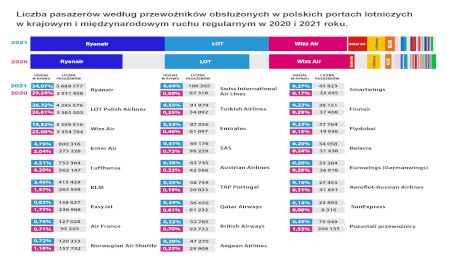 Ostatecznie obsłużono ponad 19,6 mln pasażerów (+35 proc. do 2020 i -60 proc. do 2019) i prawie 191 tys. operacji lotniczych (+23 proc. do 2020 i -52 proc. do 2019).
