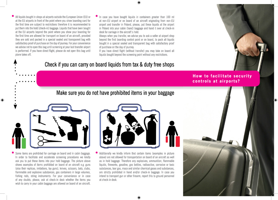 Ulotki oraz plakaty informacyjne mające na celu ułatwienie odprawy oraz kontroli bezpieczeństwa podróżnych - wersja standardowa