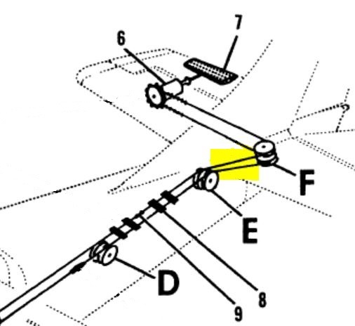 Porównanie szczegółów przebiegu linek na rysunku 9-1 zamieszczonym w IOT D2006-4-13, w stosunku do Instrukcji Obsługi Technicznej D20068-3-13 , Cessna 182 (1977-1986), a więc modelu nowszego, wykazuje różnicę w przebiegu linek między zespołami rolek E i F. Na poniższych rysunkach kluczowy odcinek zaznaczony na żółto. Po poprowadzeniu linek zgodnie z rysunkiem 9-1 zamieszczonym w IOT D2068-3-13, stwierdzono poprawność działania klapki trymera w zakresie kierunków wychylenia.